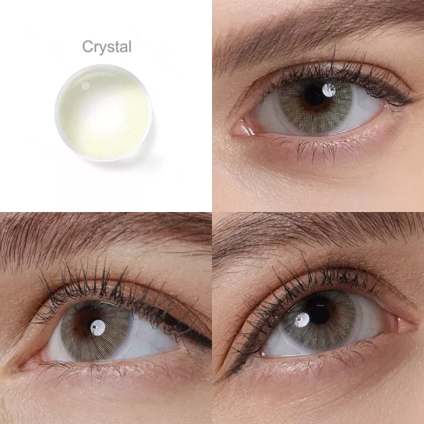 La paire de lentilles Hidrocor Crystal, comme son nom l’indique, trouve son inspiration dans les cristaux dont les plus communs sont la neige, les sels, les métaux et les pierres précieuses. Cette paire, proche de la Hidrocor Icy Gray a pour particularité d’allier à la perfection le gris avec des teintes plus vertes.